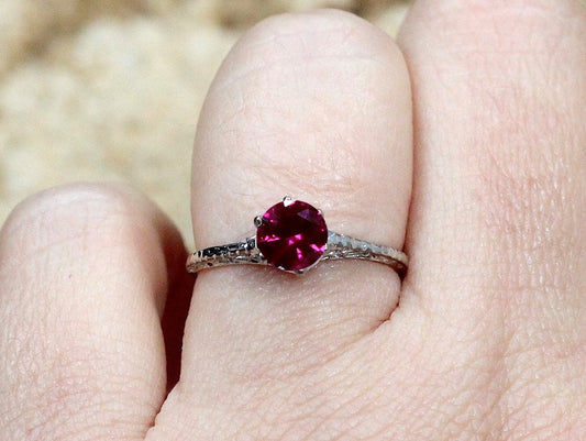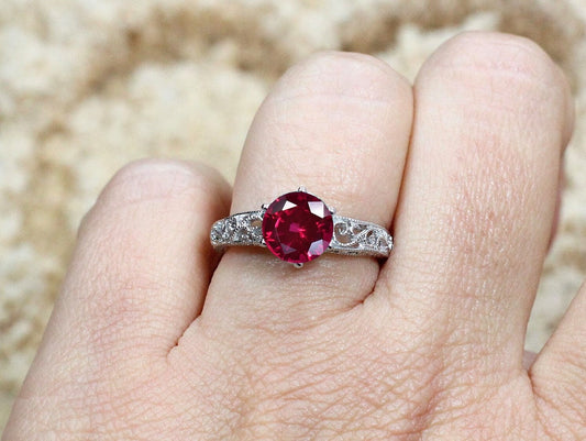 Vintage Ruby Engagement Ring Custom Size round Rhemba Antique Filigree Round 1ct 6mm White-Yellow-Rose Gold-10k-14k-18k-Platinum