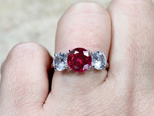 2ct Jubilee 8mm Ruby & White Sapphire Engagement Ring, 3 GemStone Ring, Jubilee, Promise ring, Gift for her