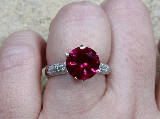 3ct Crown Jewel 9mm Round High Profile Ruby & Diamonds prongs Engagement Ring