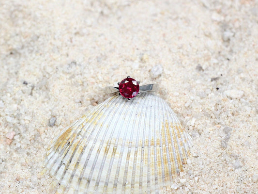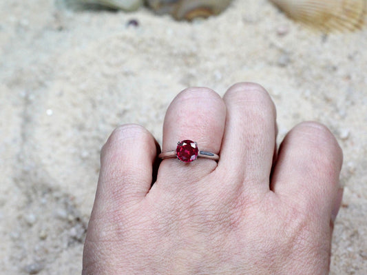Ruby 6 prong Round cut Tapered Design Solitaire Engagement Ring 1.5ct 7mm Custom Size White-Yellow-Rose Gold-10k-14k-18k-Platinumm