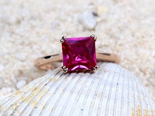 Ruby Engagement Ring,Ruby Ring,Princess Cut Ring,double prong,Solitaire,Phoebe,3.5ct Ring,White-Yellow-Rose Gold-10k-14k-18k-Platinum