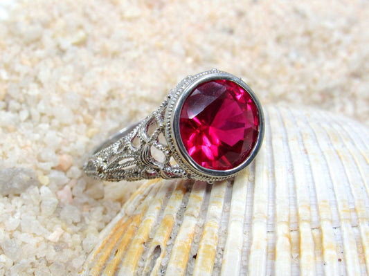 Ruby Engagement Ring,Ruby Vintage Ring, Aegle,Antique Ring,Bezel Set Ring,Filigree Ring,5ct Ring,White-Yellow-Rose Gold-10k-14k-18k-Platinum