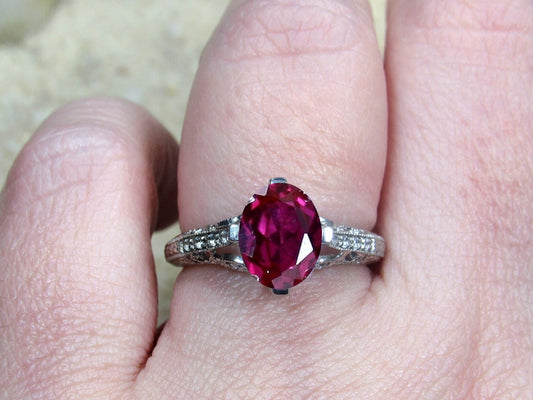 Ruby Engagement Ring, Vintage Filigree Ring, 3ct Oval 9x7mm, Dionysus, Red Ruby Ring,White-Yellow-Rose Gold-14k-18k-Platinum