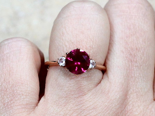 2ct Cupid 8mm Ruby White Sapphires 3 Gem Stone Engagement Ring