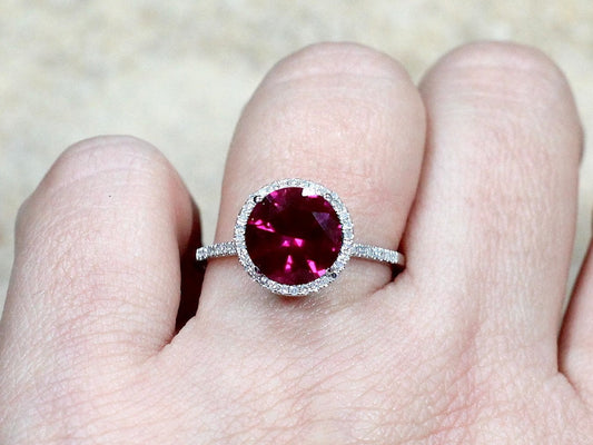 Ruby & Diamonds Engagement Ring Almost Eternity Bezel Leaf Round cut Aeolus 2ct 8mm Custom White-Yellow-Rose Gold-10k-14k-18k-Plat