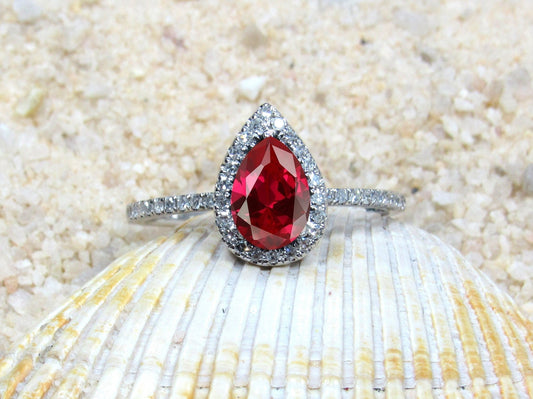 Ruby & Diamonds Pear Halo Engagement Ring Helena 1ct 7x5mm Custom Size White-Yellow-Rose Gold-10k-14k-18k-Platinum