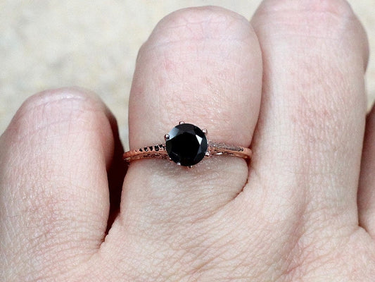 1ct Rhemba 6mm Black Spinel Engagement Ring, Antique, Filigree, Vintage