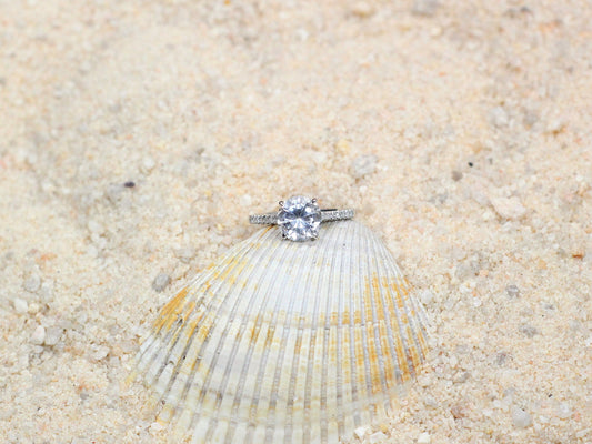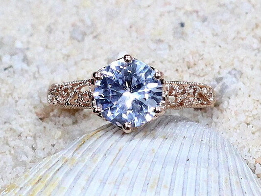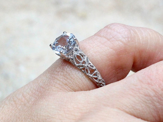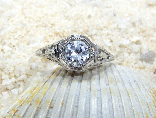 White Sapphire Engagement Ring, Vintage, Antique, Filigree, Andromeda, 2ct, 8mm