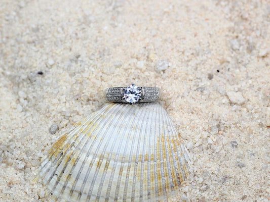 White Sapphire & Diamonds Engagement Ring 5 Row Round Pave Halfway Eternity Hebe 1ct 6mm Custom White-Yellow-Rose Gold-10k-14k-18k-Platinum