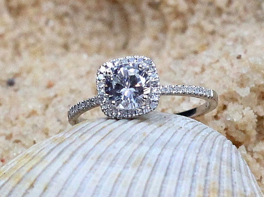 1ct Cuscino Petite 6mm White Sapphire & Diamond Cushion Halo Engagement Ring