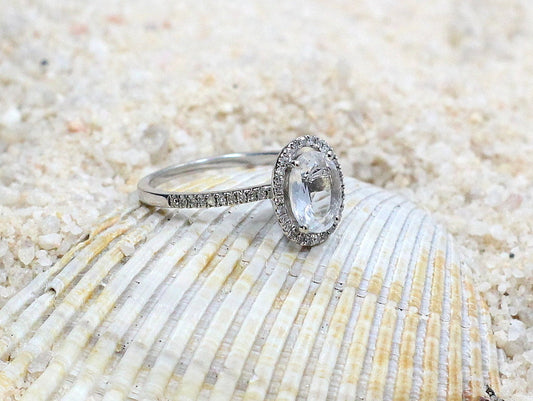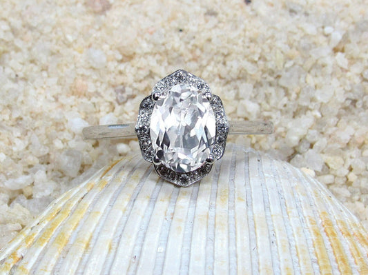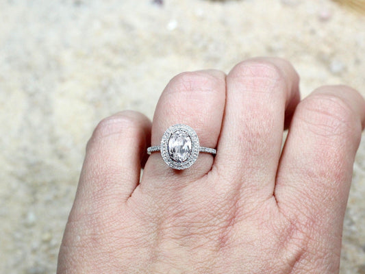2ct Ovale 8x6mm White Sapphire & Diamonds Accent Engagement Ring Halo Medio Basket