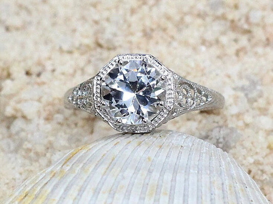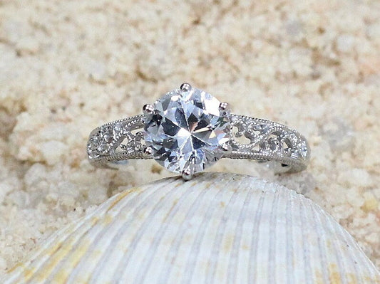 White Sapphire Engagement Ring,Vintage,Antique,Filigree,2ct,Polymnia