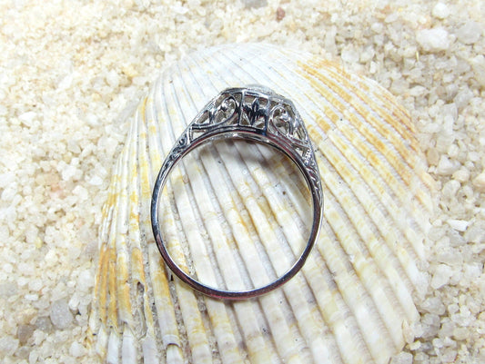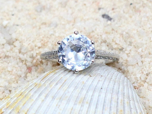 White Sapphire Engagement Ring,Antique Ring,Filigree Ring,Kassandra, .75ct 5mm,Sapphire Ring,White Sapphire Ring