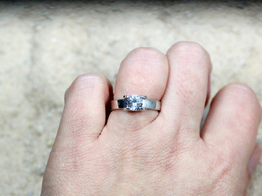 White Sapphire Engagement Ring,Tension Set Ring,Tenson Engagement Ring,Pales,1ct Ring,Sapphire Ring,White-Yellow-Rose Gold-10k-14k-18k-Plt