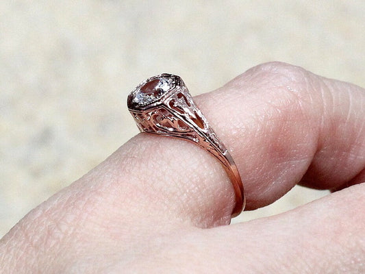 White Sapphire Vintage Engagement Ring Antique Style Filigree Round cut Kassandra .75ct 5mm White-Yellow-Rose Gold-10k-14k-18k-Platinum