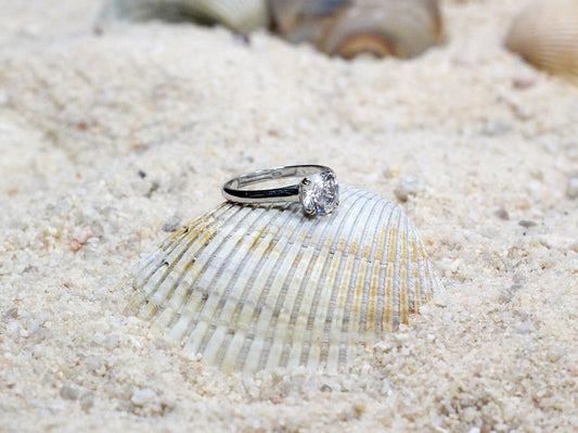 1.5ct Caerus 7mm White Sapphire 4 Double prong Solitaire Engagement Ring