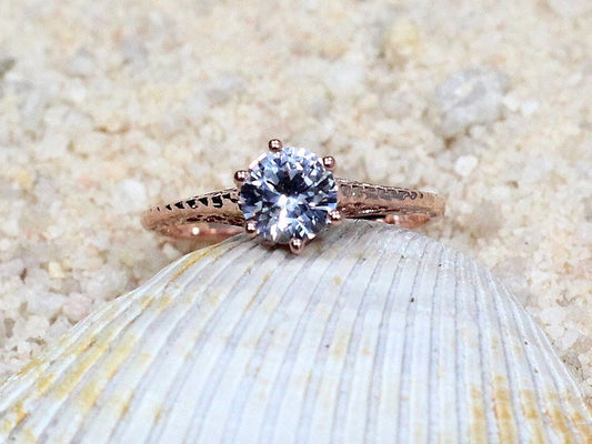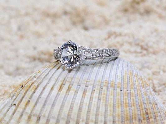 1ct Rhemba 6mm White Sapphire Engagement Ring, Antique, Filigree, Vintage