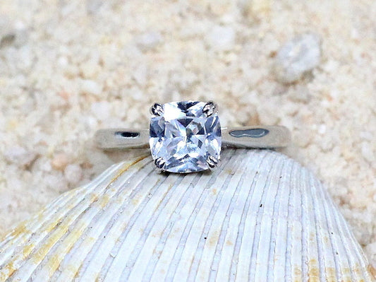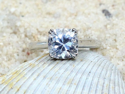 White Sapphire Engagement Ring,Cushion Cut, Solitaire, 2 Double prong, Phoebe, 2ct, 7mm