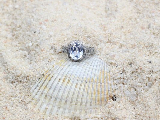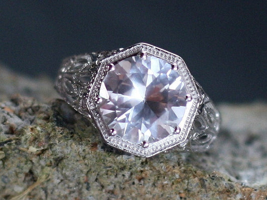 Natural White Sapphire Engagement Ring,Antique Ring,Filigree Ring,Milgrain Ring,Polymnia,Vintage Ring,White Sapphire Ring,1.5ct 7mm